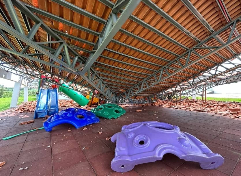 A equipe da escola descobriu a situação no dia seguinte, encontrando a estrutura metálica retorcida e partes do telhado espalhadas pelo chão. As imagens do local, obtidas com exclusividade por nossa reportagem, revelam a gravidade do ocorrido e levantam questionamentos sobre a qualidade da obra.