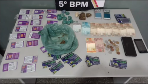 Durante a revista no imóvel, foram encontrados diversos materiais: 10 porções médias de uma substância esverdeada, aparentemente maconha; 01 pedra grande de uma substância aparentando ser pasta base de cocaína; 03 pontas de cigarros de maconha; 02 balanças de precisão; 17 chips da operadora Vivo; 01 aparelho celular da marca Samsung de cor azul; 01 aparelho celular da marca Blu; 01 cartão bancário do Nubank em nome do suspeito "JR"; e uma quantia de R$ 639,25 em espécie. Além disso, foi encontrado um veículo Fiat Uno de cor cinza, que, segundo a declaração de um dos menores, pertence ao suspeito "JP" e é utilizado para o transporte de entorpecentes.