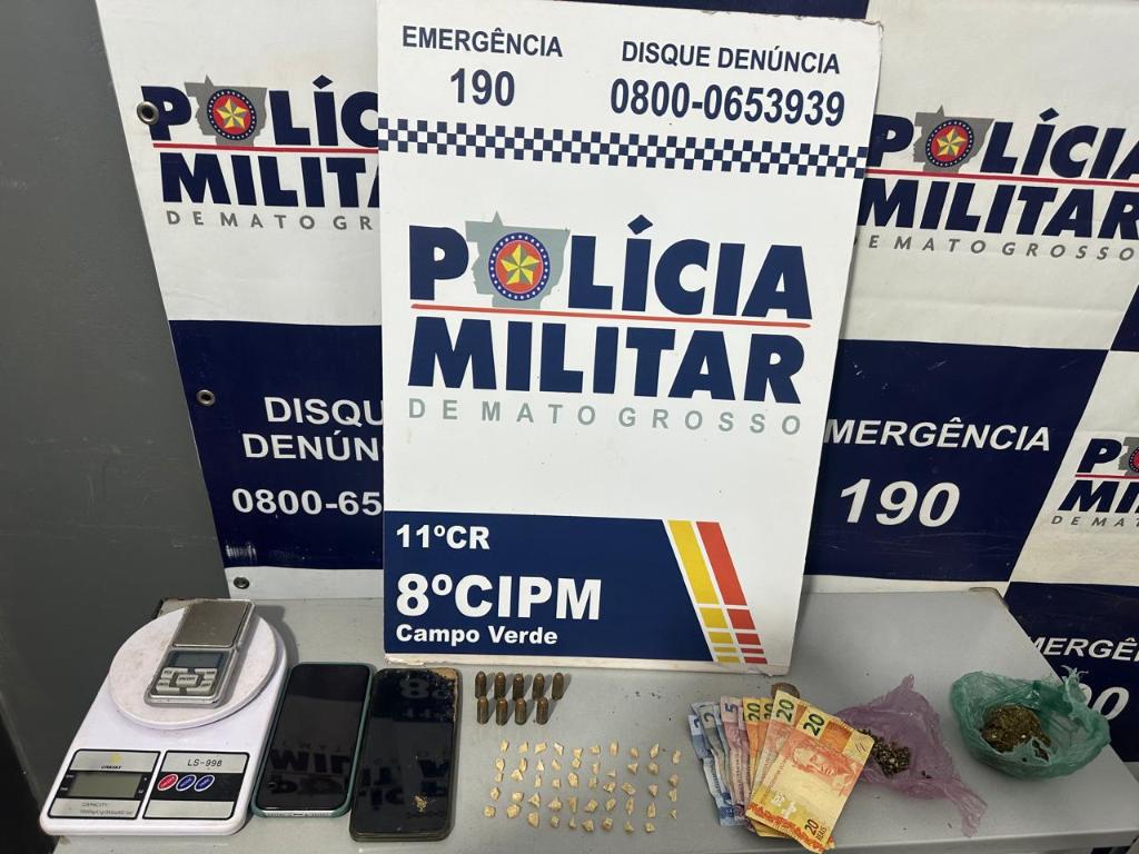 Policiais militares da 8ª Companhia Independente prenderam, em duas ações distintas, três pessoas por tráfico ilícito de drogas e apreenderam 86 porções de entorpecentes, em dois bairros do município de Campo Verde (139 km de Cuiabá), nesta quarta-feira (30.10).