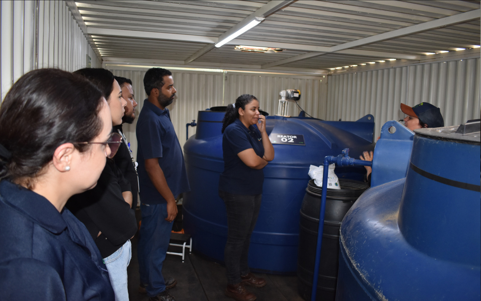 “É muito impressionante. A gente consegue perceber a separação do sólido e do líquido e verifica que a eficiência da carga orgânica é muito boa. Essa inovação no tratamento biológico é muito legal. A gente percebe que não tem odor e quando chega na parte final o efluente já saindo clarificado, sem espuma”, comentou Verônica Queiróz.